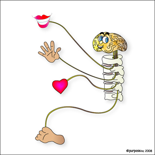 Every part of your body has its own nerve that goes from the brain, down the tunnel, and then out to that part.